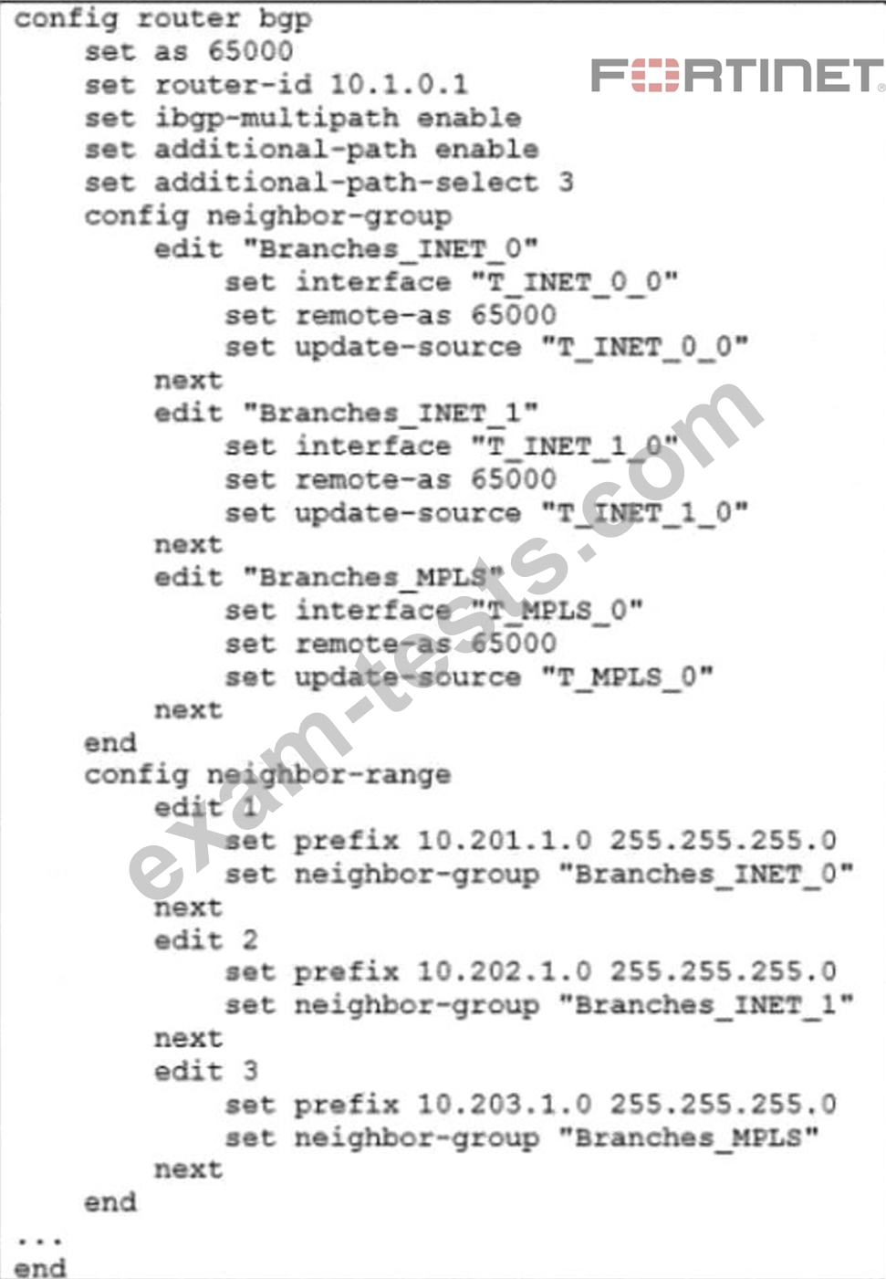 statement best describes the configuration applied to the FortiGate device?