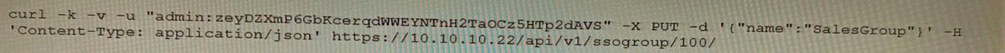 A customer wants to use the FortiAuthenticator REST API to retrieve an SSO group called SalesGroup. The following API call is being made with the 'curl' utility: