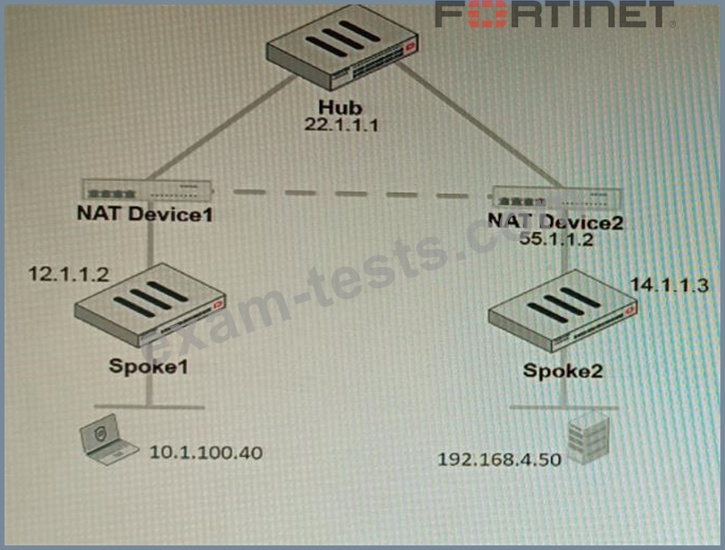 The device IP 10.1.100.40 downloads a file from the FTP server IP 192.168.4.50 Referring to the exhibit, what will be the traffic flow behavior if ADVPN is configured in this environment?