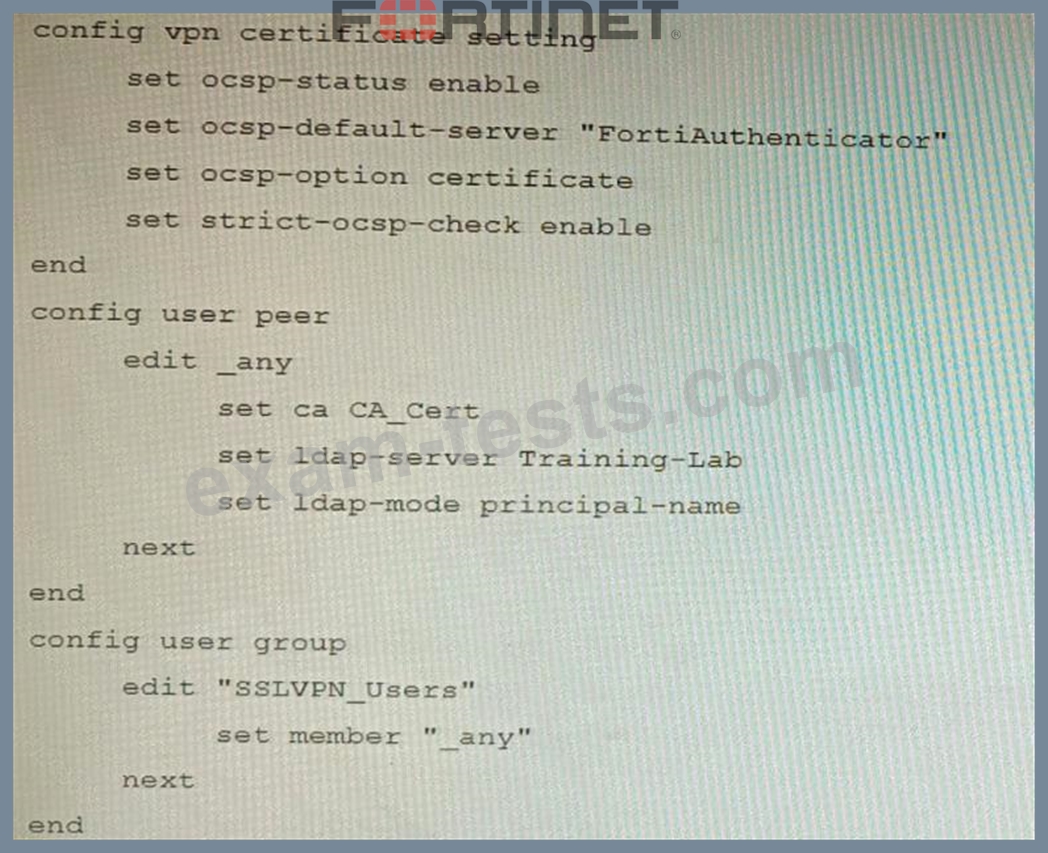 Part of the FortiGate configuration is shown below: