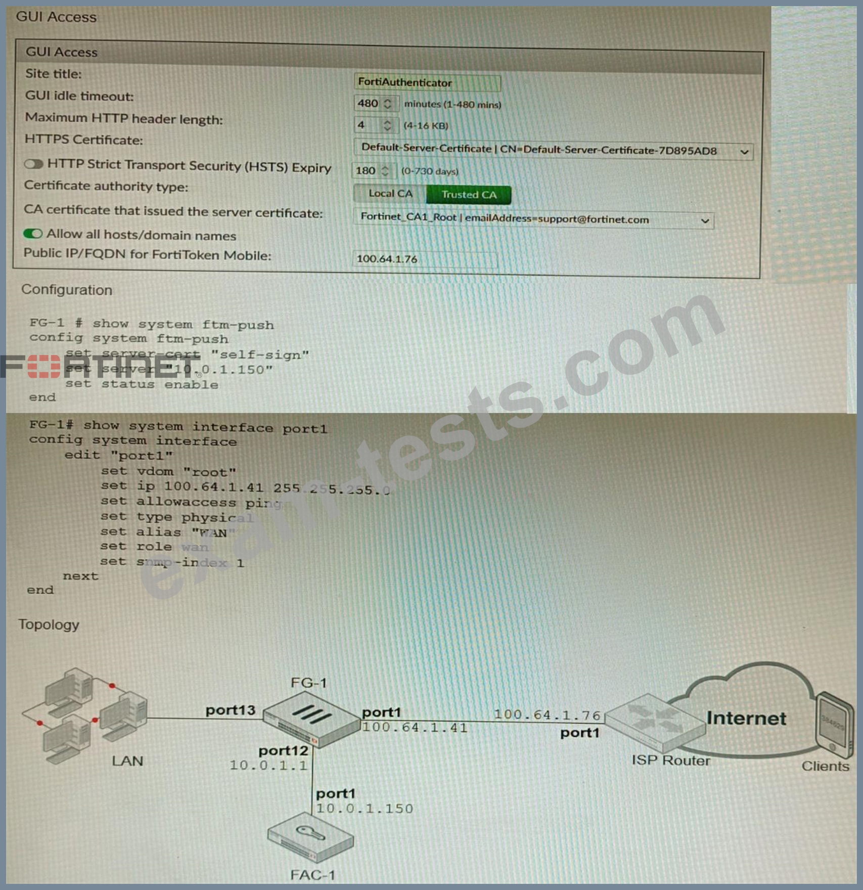 An administrator has configured a FortiGate and Forti Authenticator for two-factor authentication with FortiToken push notifications for their SSL VPN login. Upon initial review of the setup, the administrator has discovered that the customers can manually type in their two-factor code and authenticate but push notifications do not work Based on the information given in the exhibits, what must be done to fix this?