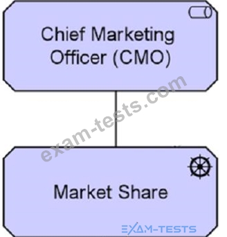 Based on the ArchiMate 3 documents or objectives, a business actor represents a business entity that is capable of performing behavior. A business actor is a business entity as opposed to a technical entity; i.e., it belongs to the Business Layer. The notation for a business actor is a circle with a stick figure inside it. The Chief Marketing Officer in this diagram is a business actor that performs the behavior assigned to the Marketing Manager role.
