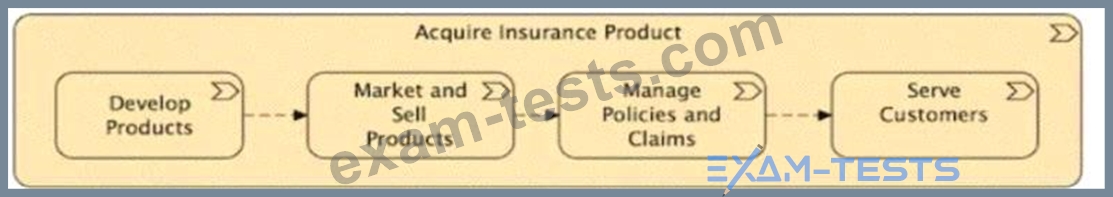 (A diagram showing "Acquire Insurance Product" decomposed intoDevelop Products, Market and Sell Products, Manage Policies and Claims, and Serve Customers.) Which of the following describes the diagram?
