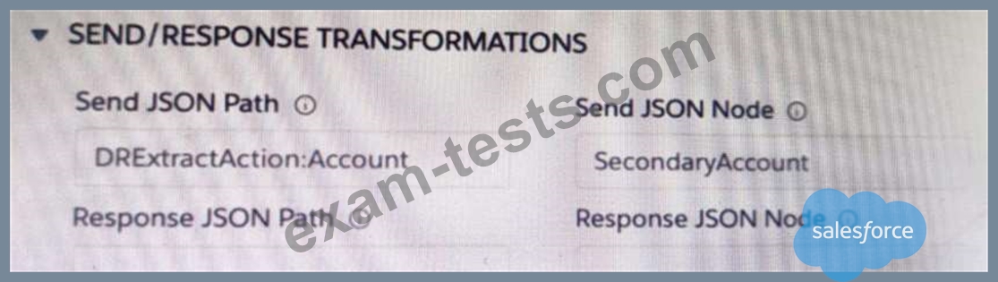 A developer has configured an integration Procedure element with SEND/RESPONSE TRANFORMATIONS as shown.