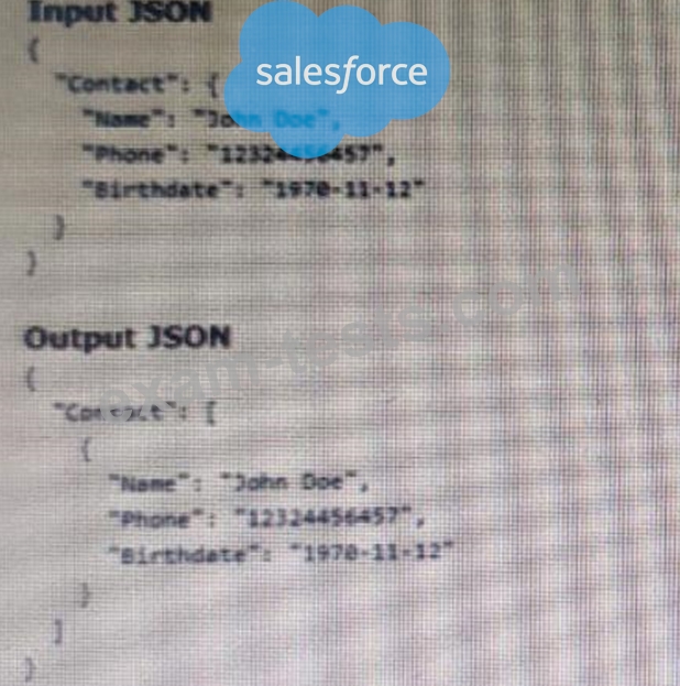 Given the input JSON shown above, what are two ways a developer could configure a DATARaptor transform to achieve theexpected Output JSON? Choose 2 answers