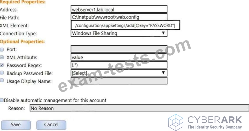 In the screenshot displayed, you just configured the usage in CyberArk and want to update its password.