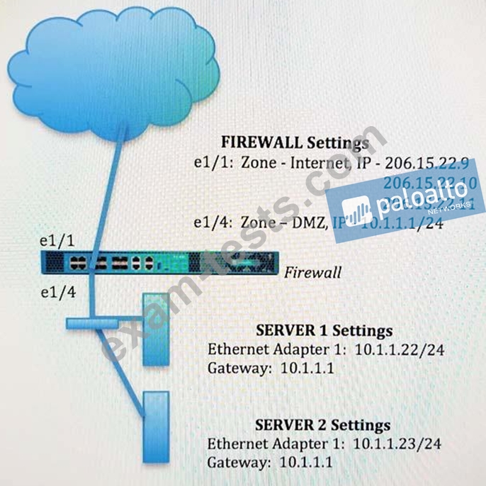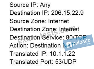 Traffic destined for 206.15.22.9 port 80/TCP needs to be forwarded to the server at 10.1.1.22 Based on the information shown in the image, which NAT rule will forward web-browsing traffic correctly?