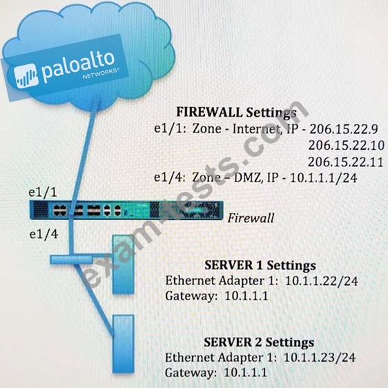 Traffic destined for 206.15.22.9 port 80/TCP needs to be forwarded to the server at 10.1.1.22 Based on the information shown in the image, which NAT rule will forward web-browsing traffic correctly?