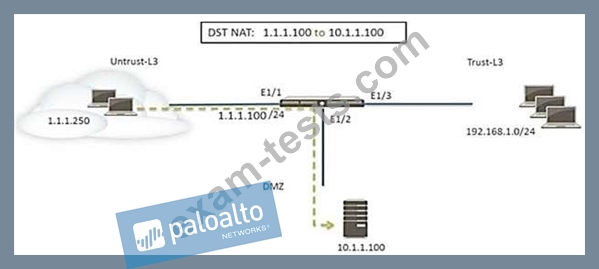Refer to the exhibit. A web server in the DMZ is being mapped to a public address through DNAT.