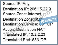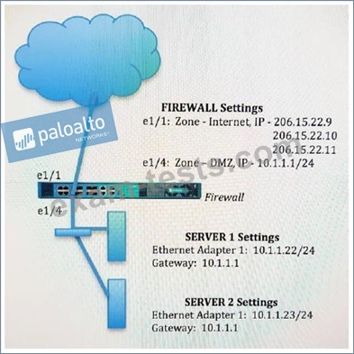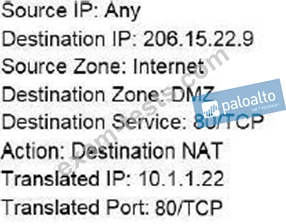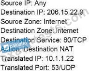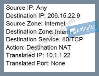 Traffic destined for 206.15.22.9 port 80/TCP needs to be forwarded to the server at 10.1.1.22