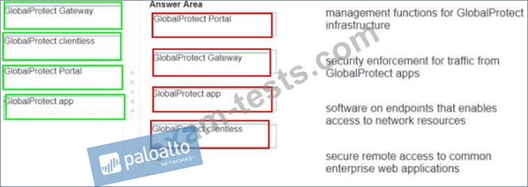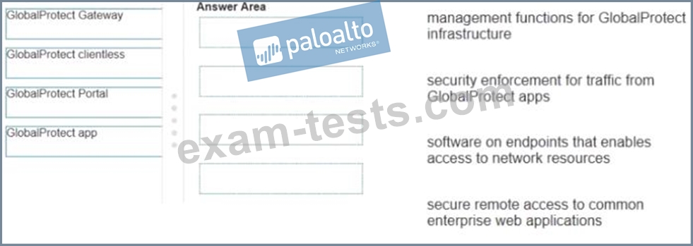 Match each GlobalProtect component to the purpose of that component