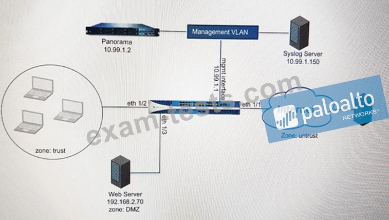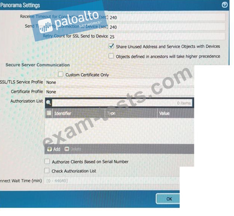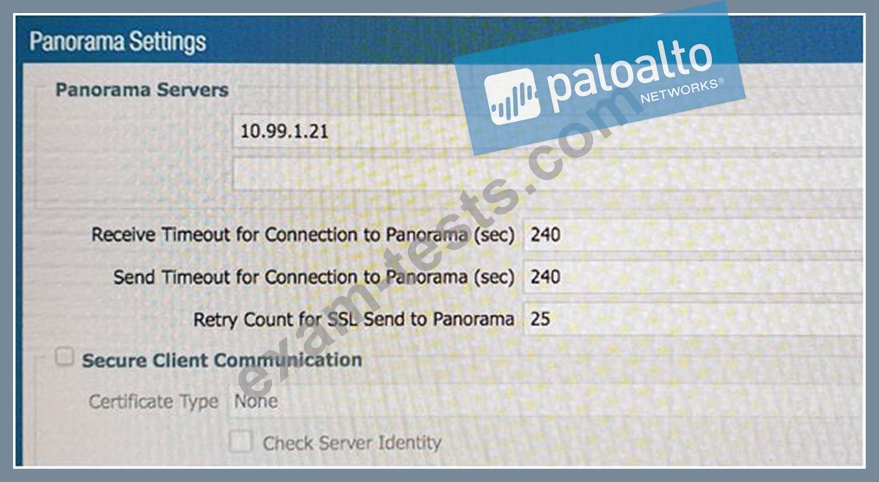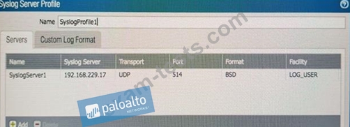 An administrator cannot see any of the Traffic logs from the Palo Alto Networks NGFW on Panoram a. The configuration problem seems to be on the firewall side. Where is the best place on the Palo Alto Networks NGFW to check whether the configuration is correct?