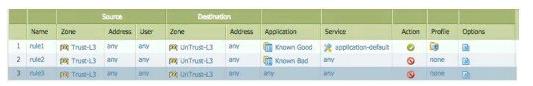 A company has a policy that denies all applications it classifies as bad and permits only application it classifies as good. The firewall administrator created the following security policy on the company's firewall.