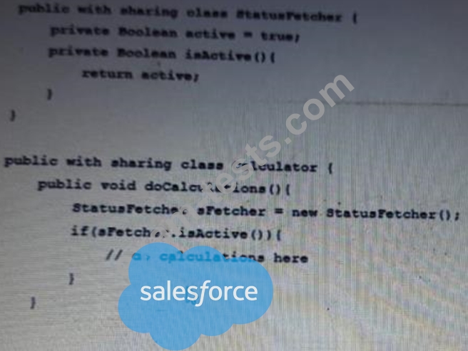 The StatusFetcher class successfully compiled and saved. However, the Calculator class has a compile time error.