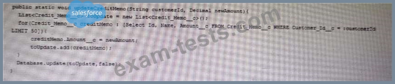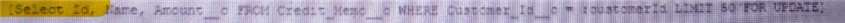 A custom object called Credit_Memo_c exist in a Salesforce environment. As part of a new feature development that retrieves and manipulates this type of record, the developer needs to ensure race conditions are prevented when a set of records are modified within an Apex transaction.