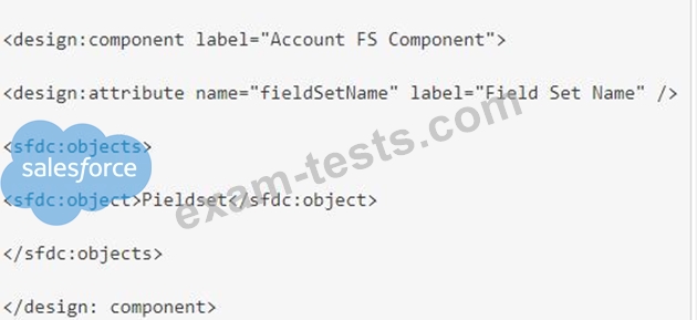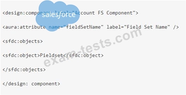 A company wants to build a custom Lightning Component that will display a specified Account Field Set and that can only be added to the Account record page. Which design resource configuration should be used?