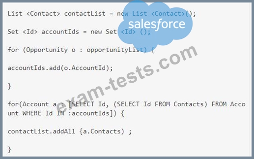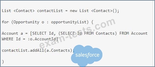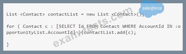 Given a list of Opportunity records named opportunityList, which code snippet is best for querying all Contacts of the Opportunity's Account?