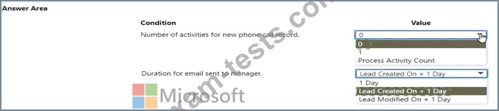 * An email must be sent to the manager if the phone call record created is not completed after one day.