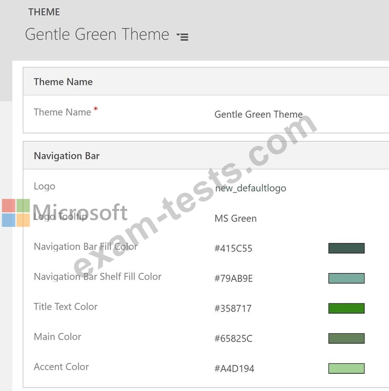 You are customizing a model-driven app for a company. You create a Theme template to ensure the company logo and colors are properly used within these apps.