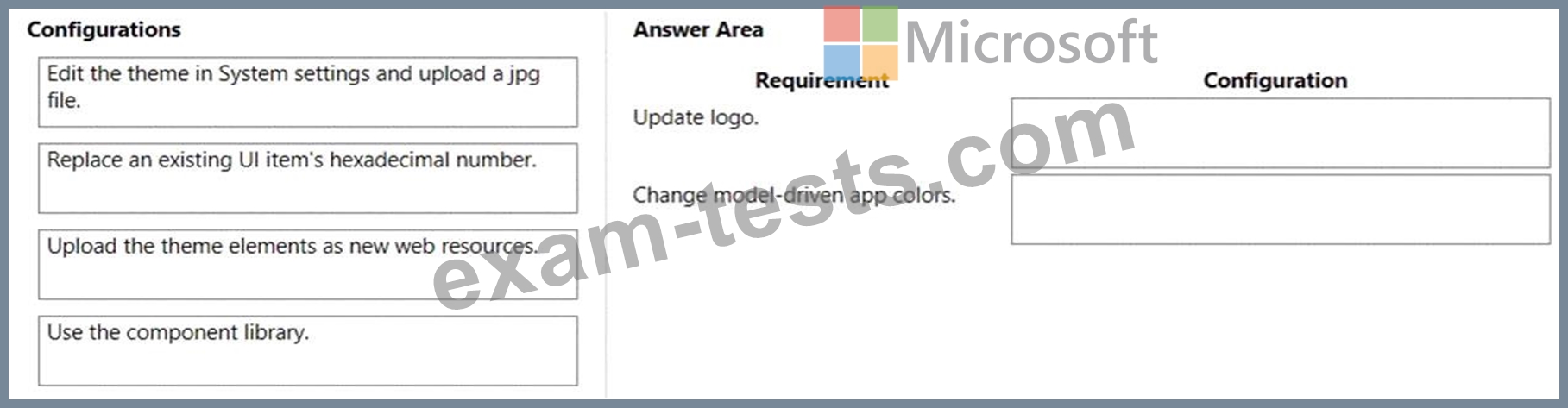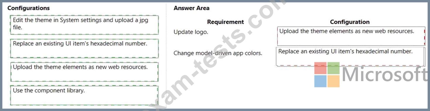 You need to configure the assets. To answer, drag the appropriate configurations to the correct requirements.