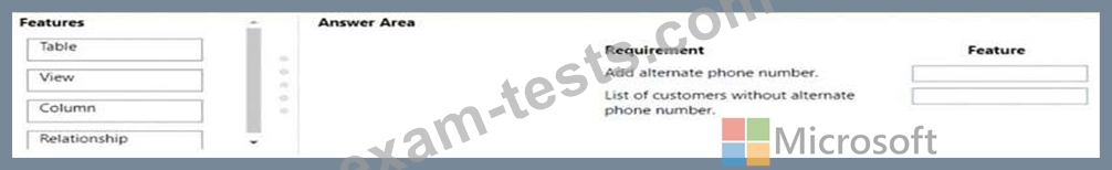 Which features should you use? To answer, drag the appropriate features to the correct requirements. Each feature may be used once, more than once, or not at all. You may need to drag the split bar between panes or scroll to view content.
