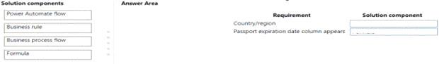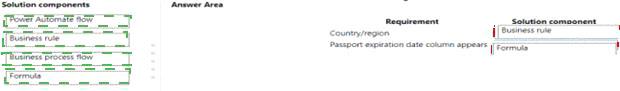 What should you configure? To answer, drag the appropriate solution component to the correct requirements.