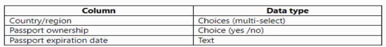 * The Passport expiration date column must appear only if the user selects Yes in the Passport ownership column.