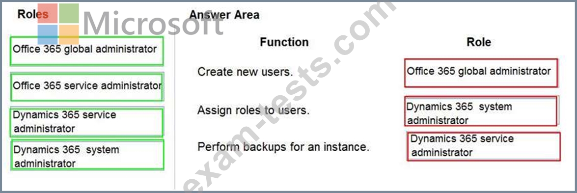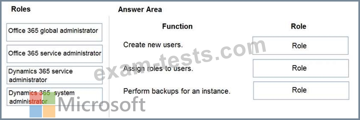 Which roles should you recommend? To answer, drag the appropriate roles to the correct functions. Each role may be used once, more than once, or not at all. You may need to drag the split bar between panes or scroll to view content.
