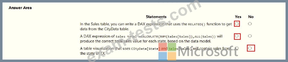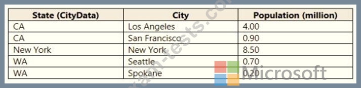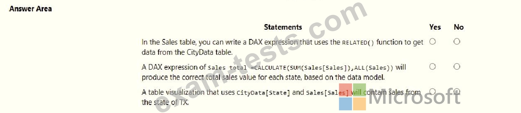You are creating a Microsoft Power Bl model that has two tables named CityData and Sales. CityData contains only the data shown in the following table.