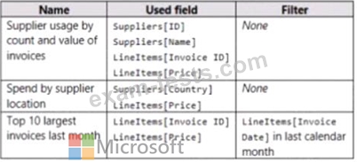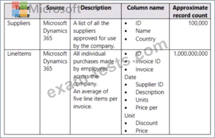 You have a Power Bi report for the procurement department. The report contains data from the following tables.
