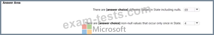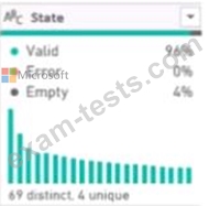 You have a table named Reports that contains a column named State. The distribution and quality data metrics for the data m State is shown in the following exhibit.