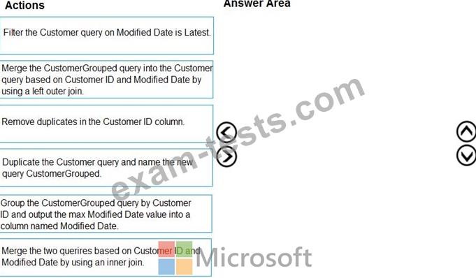 Which three actions should you perform in sequence? To answer, move the appropriate actions from the list of actions to the answer area and arrange them in the correct order.