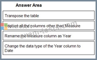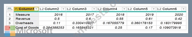 You connect to the data stored in a Microsoft Excel spreadsheet by using Power Query Editor as shown in the following exhibit.