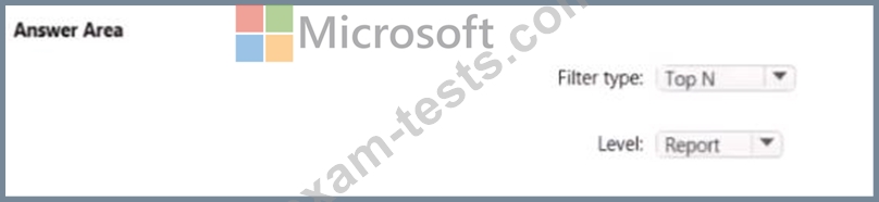 Which type of filter should you use, and at which level should you apply the filter? To answer, select the appropriate options in the answer area.