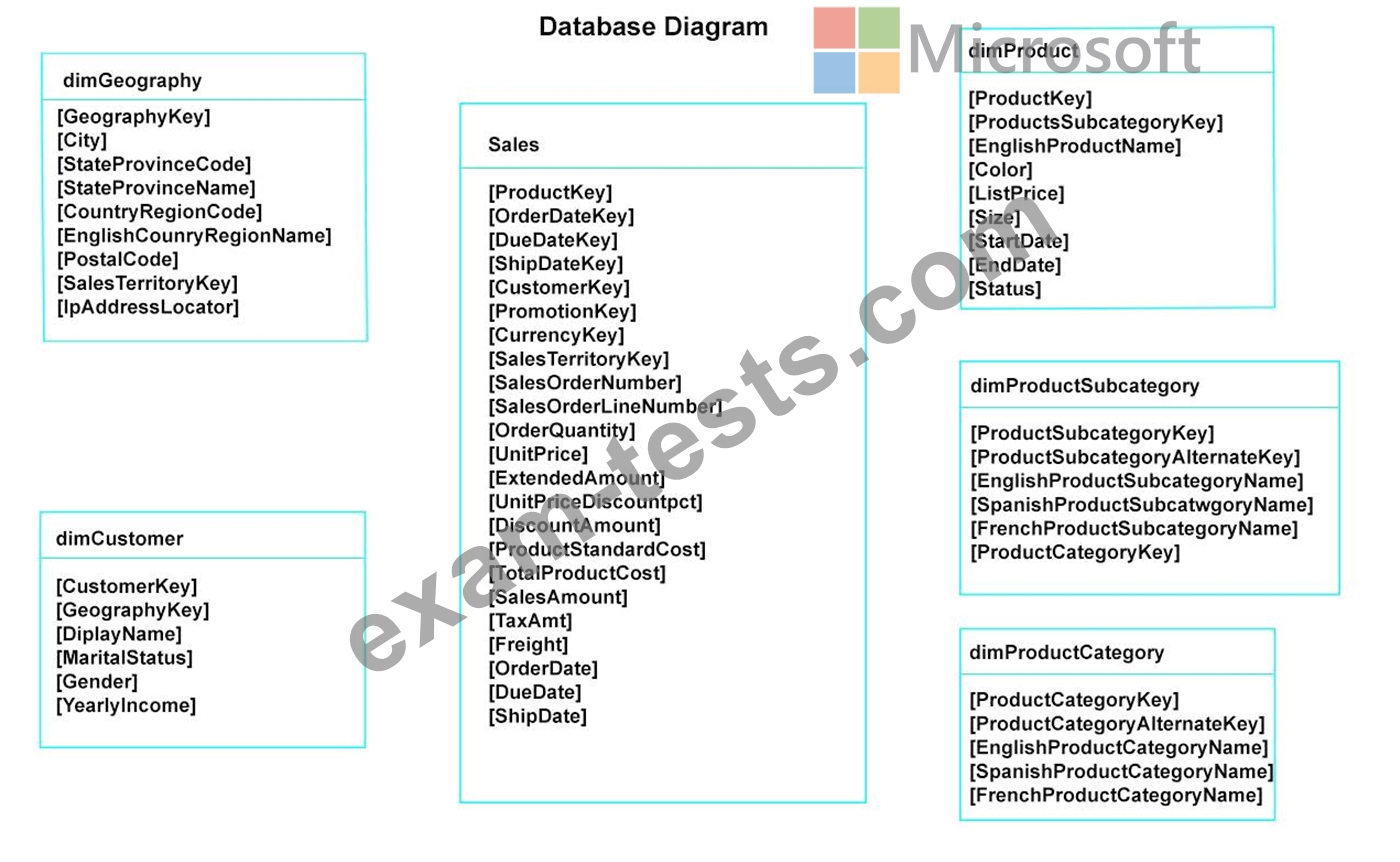 You plan to develop a Power BI model as shown in the Power BI Model exhibit. (Click the Exhibit).