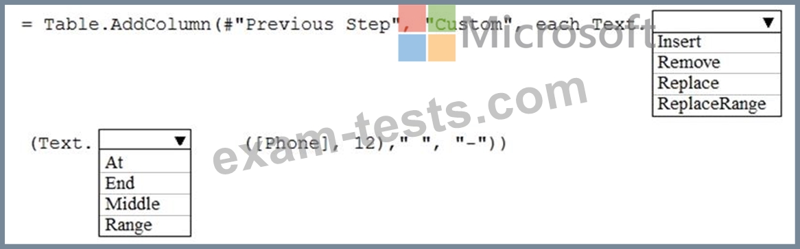 How should you complete the Query Editor formula? To answer, select the appropriate options in the answer area.