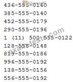 You have a table that contains a column named Phone. The following is a sample of the data in the Phone column.