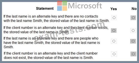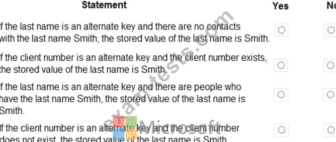 A company updates their client contact information periodically. The contact entity has alternate keys defined.
