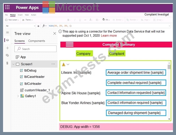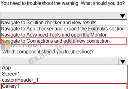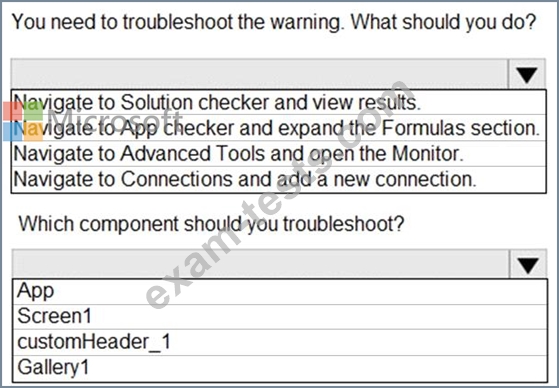 You open a canvas app in edit mode. A warning message displays as shown in the graphic.