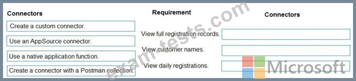 Which types of connectors should you use? To answer, drag the appropriate connectors to the correct requirements. Each connector may be used once, more than once, or not at all. You may need to drag the split bar between panes or scroll to view content.