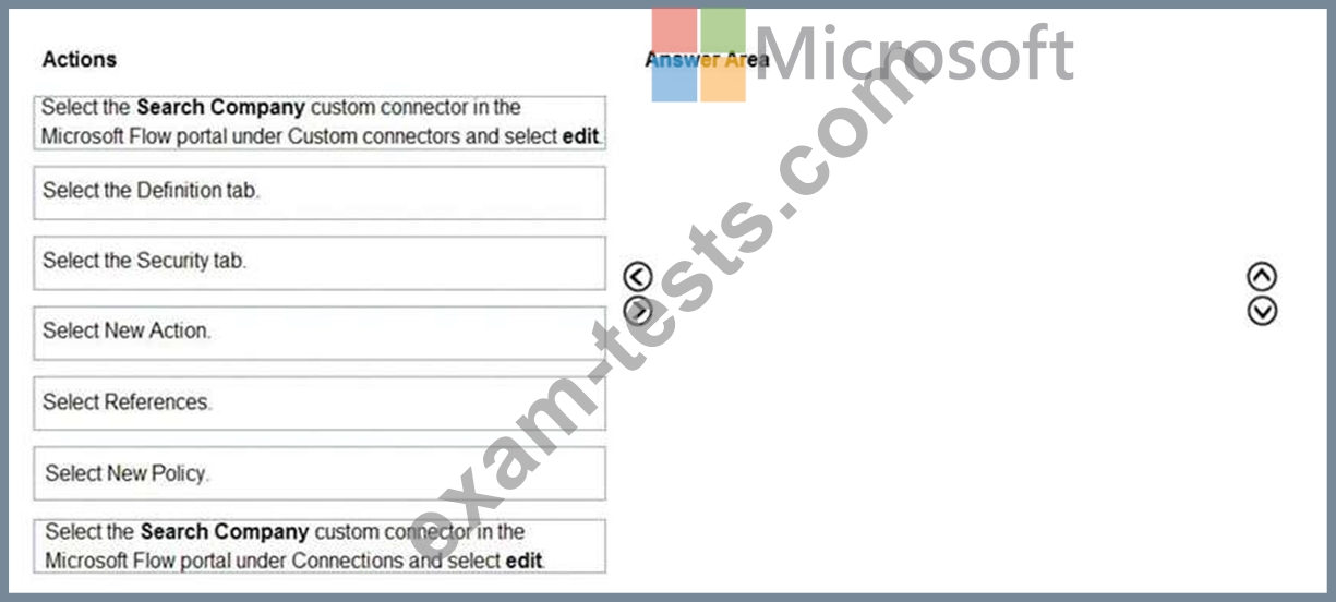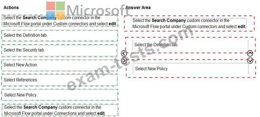 In which order should you perform the actions? To answer, move all actions from the list of actions to the answer area and arrange them in the correct order.