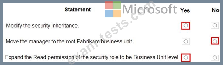 The manager of the Property Management business unit is a member of a Fabrikam business unit, which has the root security role as shown in the Security Role exhibit. (Click the Security Role tab.)