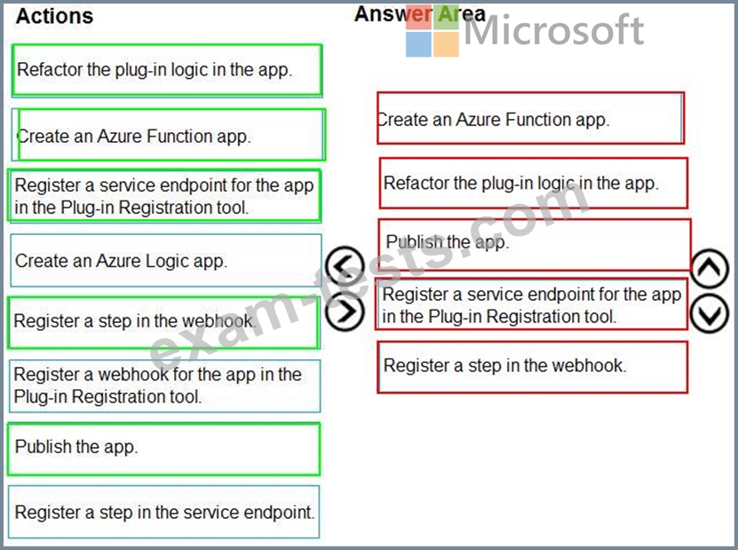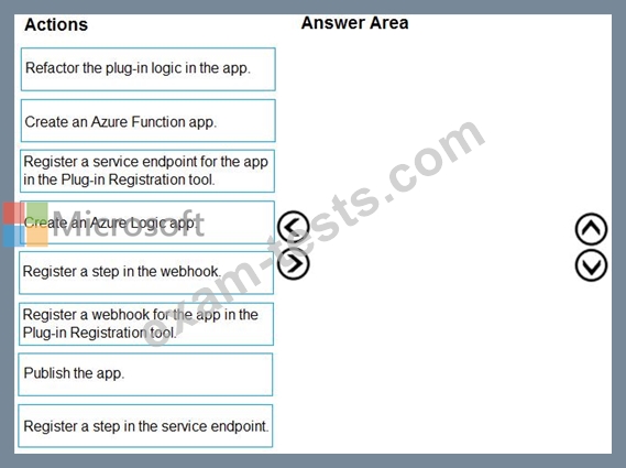 Which five actions should you perform in sequence? To answer, move the appropriate actions from the list of actions to the answer area and arrange them in the correct order.