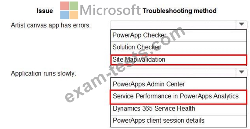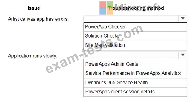 Which troubleshooting methods should you use? To answer, select the appropriate options in the answer area.