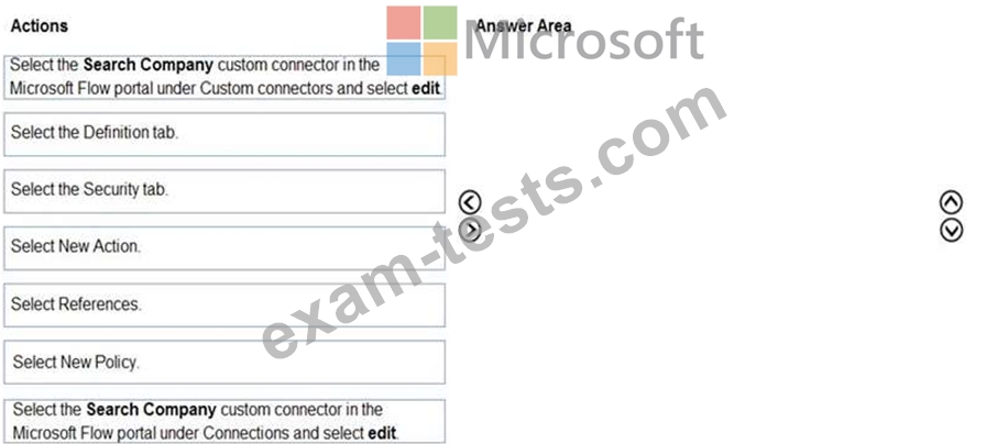 Which three actions should you perform in sequence? To answer, move the appropriate actions from the list of actions to the answer area and arrange them in the correct order.