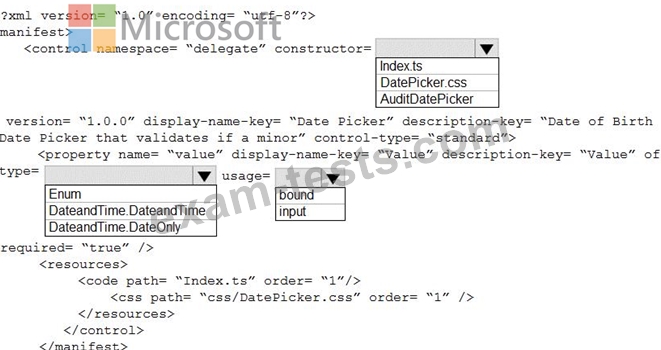 You are asked to create a new re-usable custom component using the Power Apps component framework (PCF).