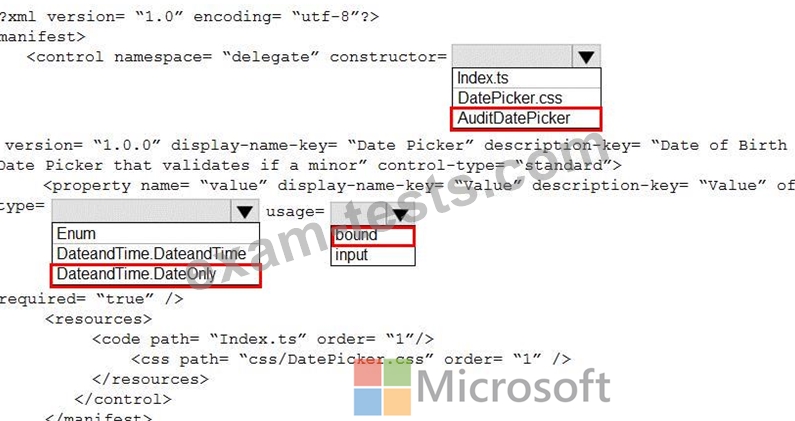 How should you complete the manifest? To answer, select the appropriate options in the answer area.