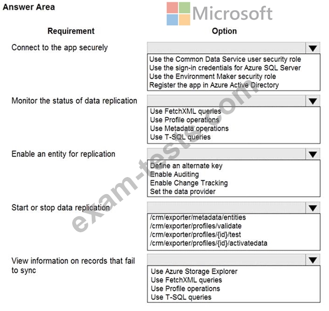 Which options should you use? To answer, select the appropriate options in the answer area.