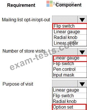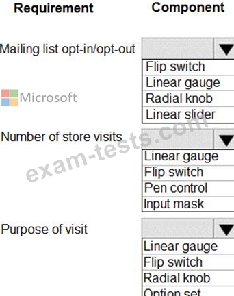 Which components should you use? To answer, drag the appropriate components to the correct requirements. Each component may be used once, more than once, or not at all. You may need to drag the split bar between panes to scroll to view content. Select the appropriate options in the answer area.