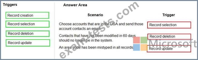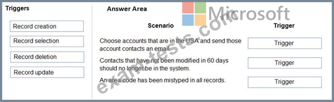 Which triggers should you use? To answer, drag the appropriate triggers to the correct scenarios. Each trigger may be used once, more than once, or not at all. You may need to drag the split bar between panes or scroll to view content.